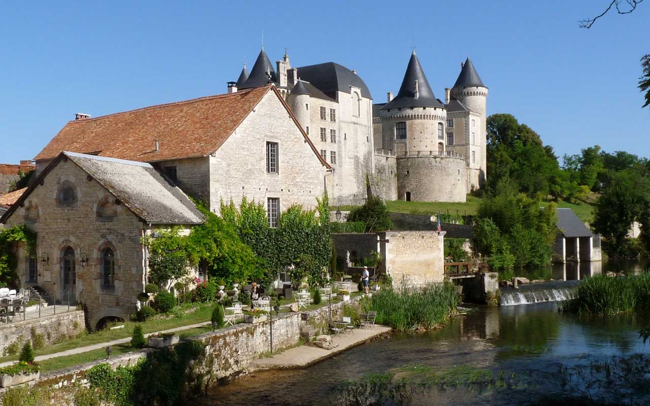 The grounds of the Château de Verteuil are charming, with a beautiful water mill situated below the castle.